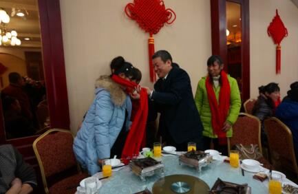 银桥南海董事长王先炎给员工佩带吉祥围巾