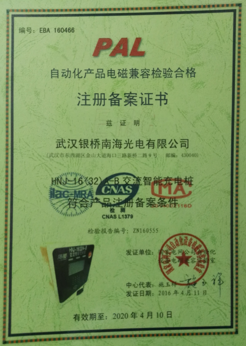 交流智能充电桩-注册备案证书